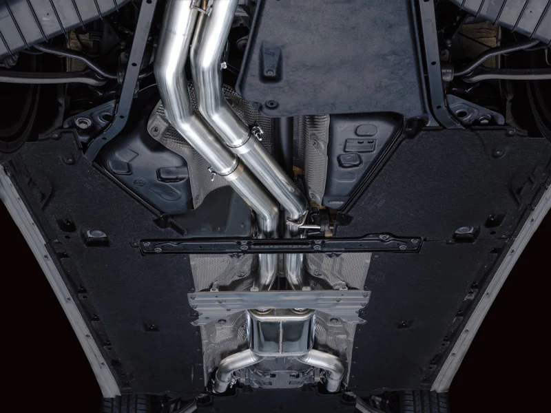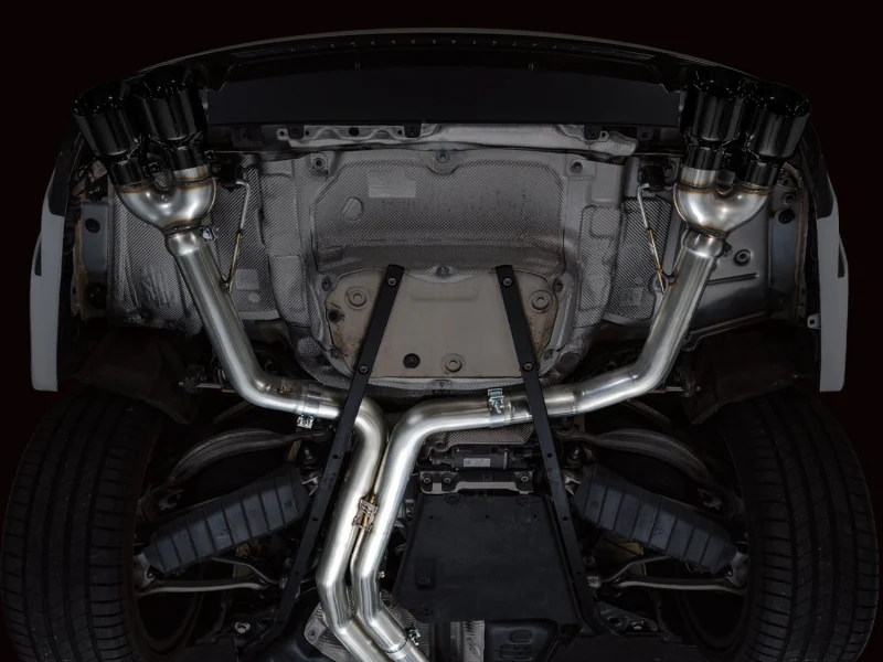 If raw and rowdy are your speed, the Track Edition is your dose of steel. A true dual 3” T304L stainless steel configuration featuring a bespoke, straight-through center resonator specific for the 2.9TT, and Track Edition straight sections in the rear. Quad 4.5″ double-walled, slash-cut tips in your choice of chrome silver or diamond black. AWE No CEL Guarantee, Perfect Fitment Guarantee, and Lifetime Warranty come standard. Please note: this version is known to get rowdy in the mid-range and during cruising speeds, and may be too much for many. For that reason, this particular version cannot be returned due to sound preference. Prepare yourself.