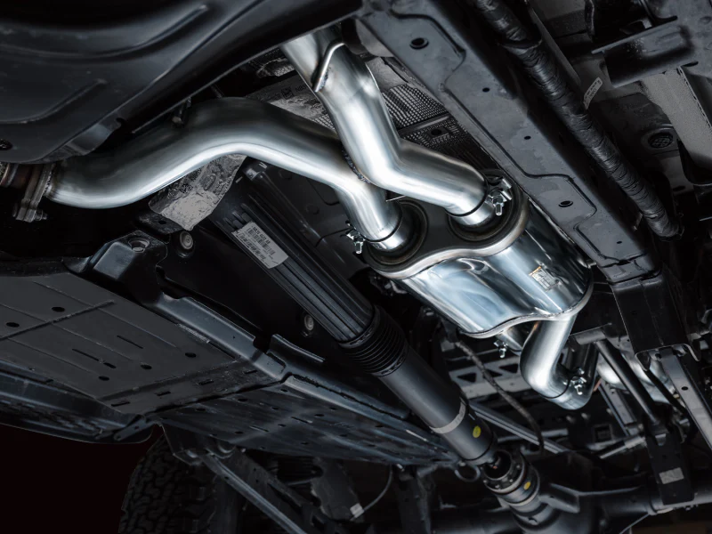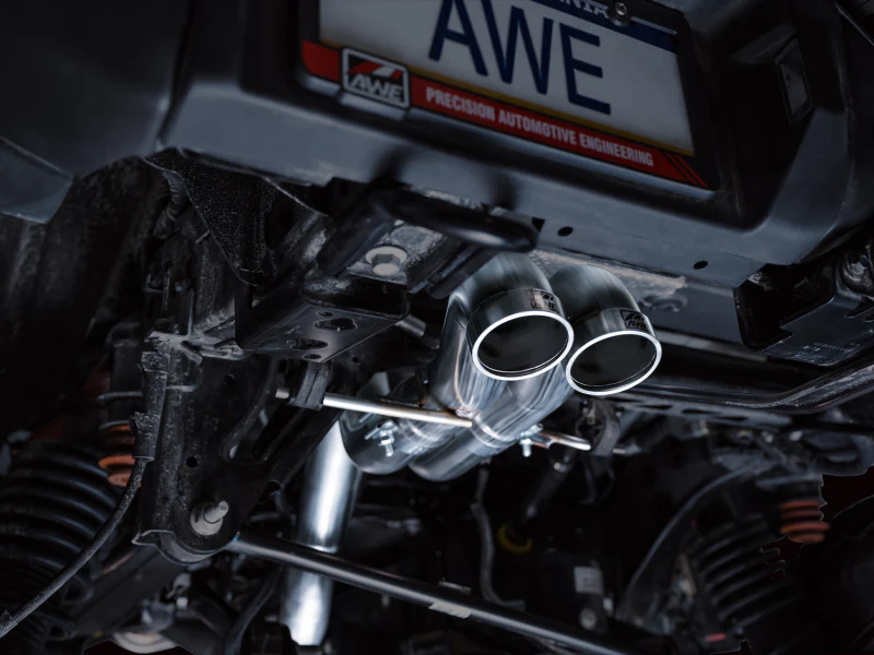 Introducing the SwitchPath™ Cat Back Exhaust for the Ford Bronco Raptor, primed for action. SwitchPath™ unlocks a distinctive, clean soundtrack, courtesy of the precision-engineered X-pipe. Engineered for your comfort, SwitchPath™ integrates a tier 1 OEM-supplied valve, mirroring factory functionality. Cruise the highway or start up cold with the valve closed, then unleash the full throttle experience with a simple button press. The transition between valve positions remains subtle, thanks to the high-flow design, prioritizing comfort without compromise. Plus, SwitchPath™ includes a machined aluminum valve bracket to accomodate the secondary valve to maintain ECU harmony. Designed to tackle any terrain, SwitchPath™ is crafted from 3” CNC mandrel-bent, U.S.-sourced .065”-wall T304L stainless steel, featuring dual BashGuards™ to fortify the outlets against potential obstacles, ensuring peace of mind when on trail. Power-wise, SwitchPath™ delivers dyno-proven gains of +1 hp and +9 lb-ft of torque at the wheels. SwitchPath™ is 100% emission-friendly, leaving factory emissions equipment untouched. Made in PA, USA, every aspect of SwitchPath™ is meticulously engineered, designed, and manufactured in-house at AWE. With AWE’s Perfect Fitment Guarantee, No CEL Guarantee, and Lifetime Warranty, excellence comes standard.