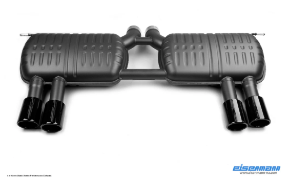 Eisenmann’s BMW E71 X6M exhaust system features either 4x83mm LeMans tips, 4x90mm tips, or 4×90 Black Series tips, sport or race sound options, and Eisenmann’s trademark tone for a deep sound at low RPM, and a true performance car scream at high RPM.