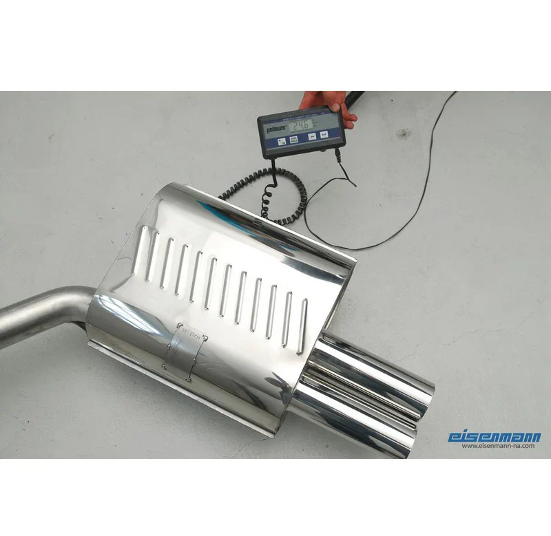 Construction of nearly all Eisenmann exhaust systems, both externally and internally, is 100% light weight T304/T306 stainless steel throughout. The design of each and every system, from tube configuration and size to muffler and box dimensions, are meticulously calculated and optimized to provide maximum performance at all revs, drawing on Eisenmann’s vast Motorsport experience.