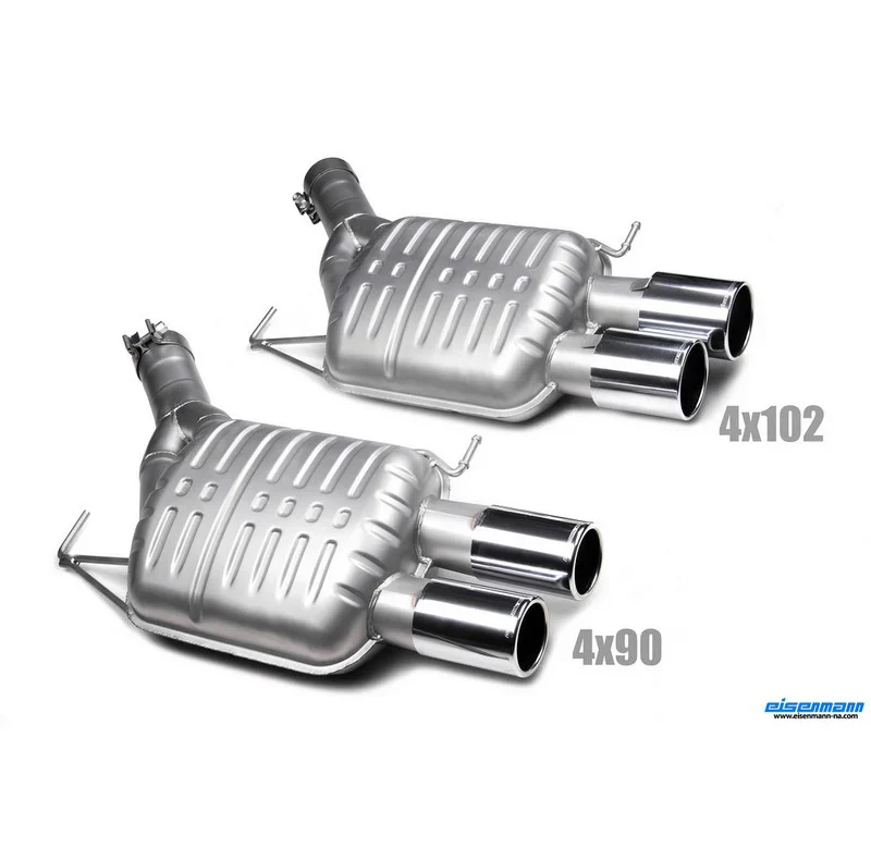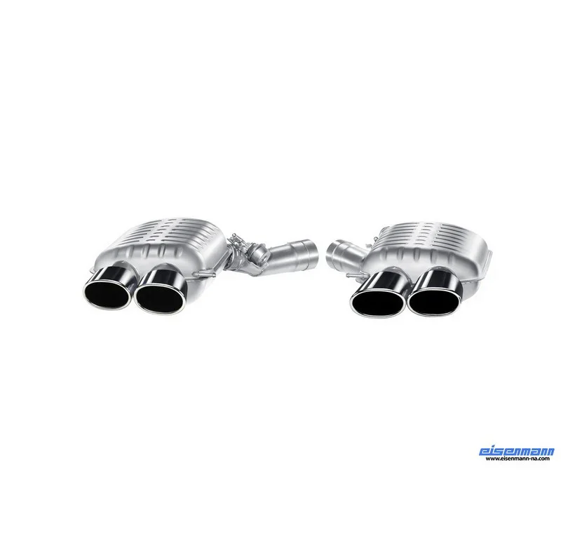 Construction of nearly all Eisenmann exhaust systems, both externally and internally, is 100% light weight T304/T306 stainless steel throughout. The design of each and every system, from tube configuration and size to muffler and box dimensions, are meticulously calculated and optimised to provide maximum performance at all revs, drawing on Eisenmann’s vast Motorsport experience.