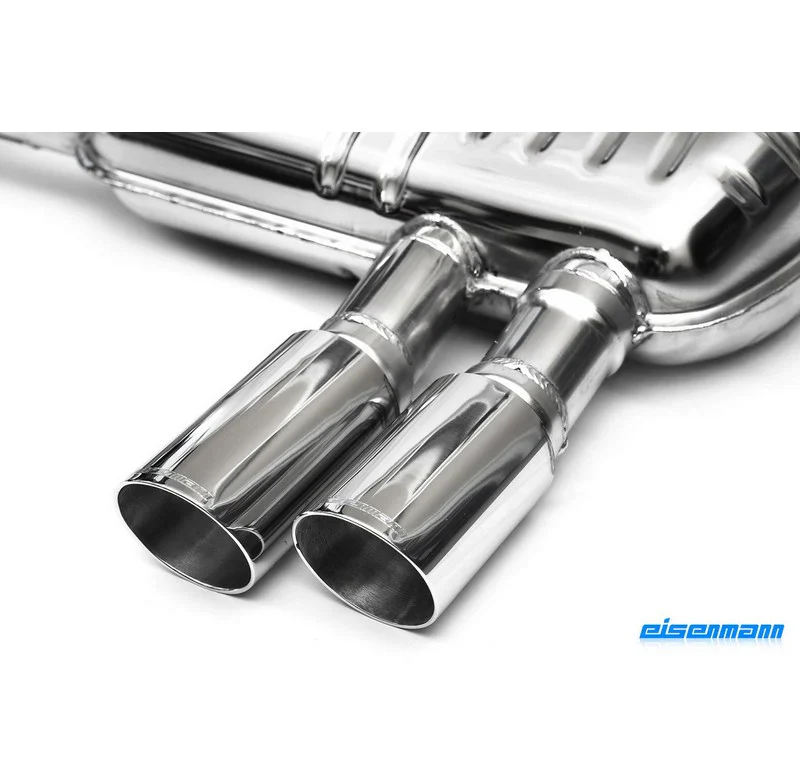 Eisenmann’s BMW E71 X6M exhaust system features either 4x83mm LeMans tips, 4x90mm tips, or 4×90 Black Series tips, sport or race sound options, and Eisenmann’s trademark tone for a deep sound at low RPM, and a true performance car scream at high RPM.