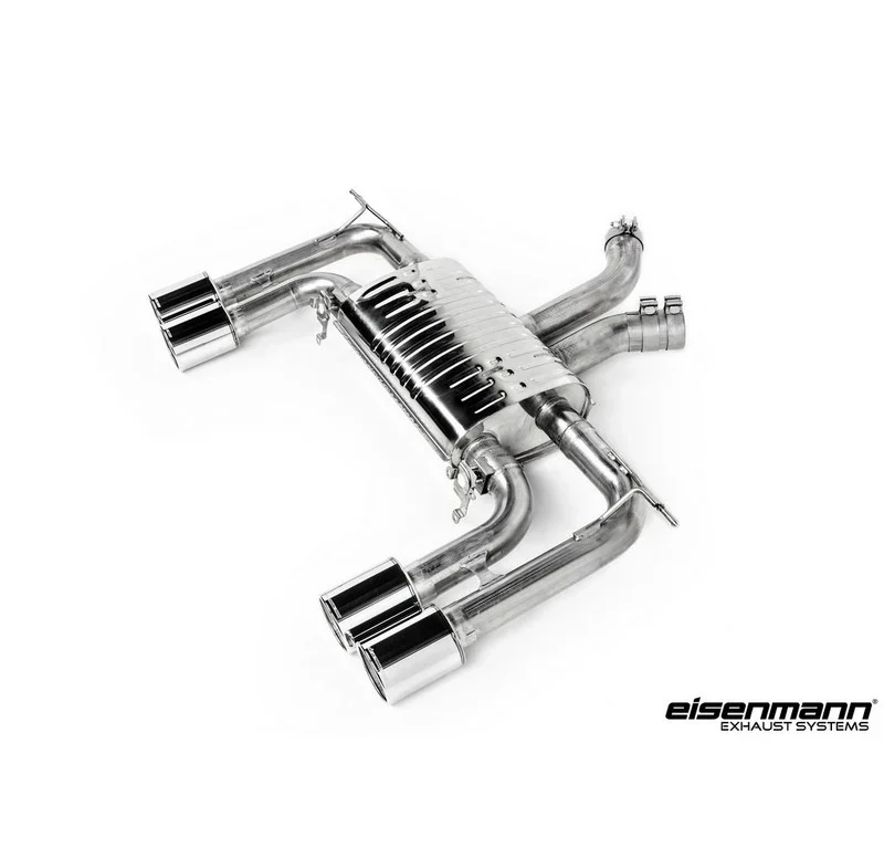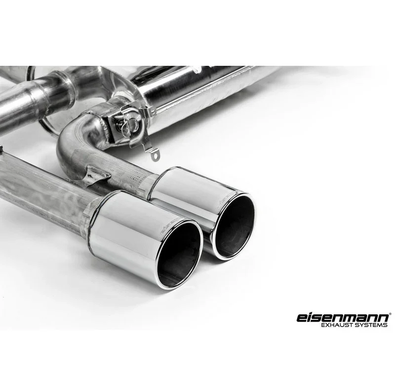 Construction of nearly all Eisenmann exhaust systems, both externally and internally, is 100% light weight T304/T306 stainless steel throughout. The design of each and every system, from tube configuration and size to muffler and box dimensions, are meticulously calculated and optimised to provide maximum performance at all revs, drawing on Eisenmann’s vast Motorsport experience.