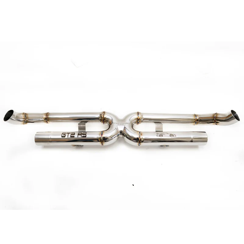 Replaces the fragile OEM GT2RS titanium rear muffler with a high performance x-pipe for enhanced exotic sound, increased power and throttle response. Larger diameter CNC mandrel bent tubing for more power. Simple 30 minute upgrade to save your Titanium muffler from breaking, exploding as is typical.
