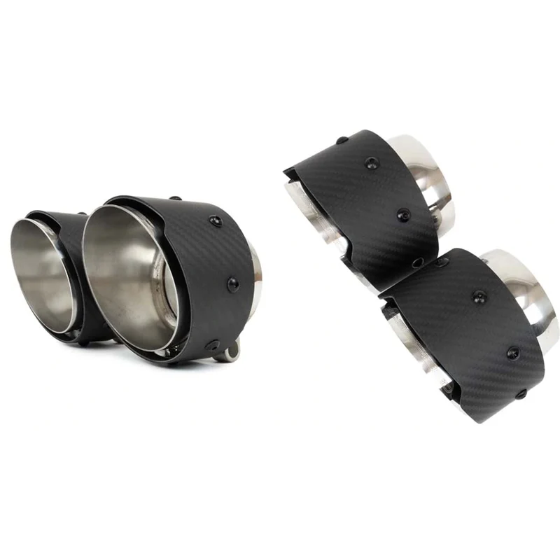 - Includes deluxe dual style tips in your choice of satin black, carbon fiber, or Polished Stainless Steel