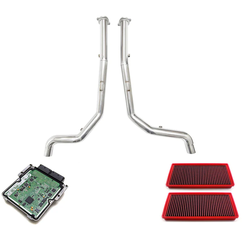 Fabspeed is proud to offer a complete performance and sound solution for the Range Rover Sport Supercharged. We’ve utilized our in-house Dynojet to dial in all parameters of the ECU in conjunction with our properly designed Primary Catbypass Downpipes, Supercup Exhaust and BMC Filters. We even acquired our own project Range Rover Sport Supercharged as an extended development platform to extract maximum performance out of the 5.0L supercharged engine. Improve your car with a bespoke performance package and save while doing all modifications at once.