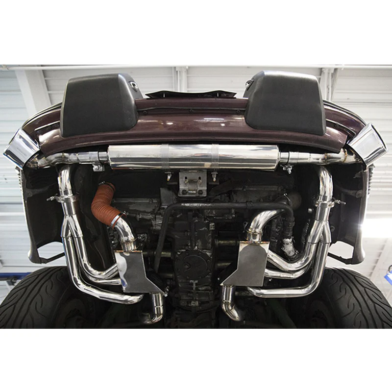 This complete headers back high performance exhaust system provides loud & aggressive CUP car sound with dual outlets.