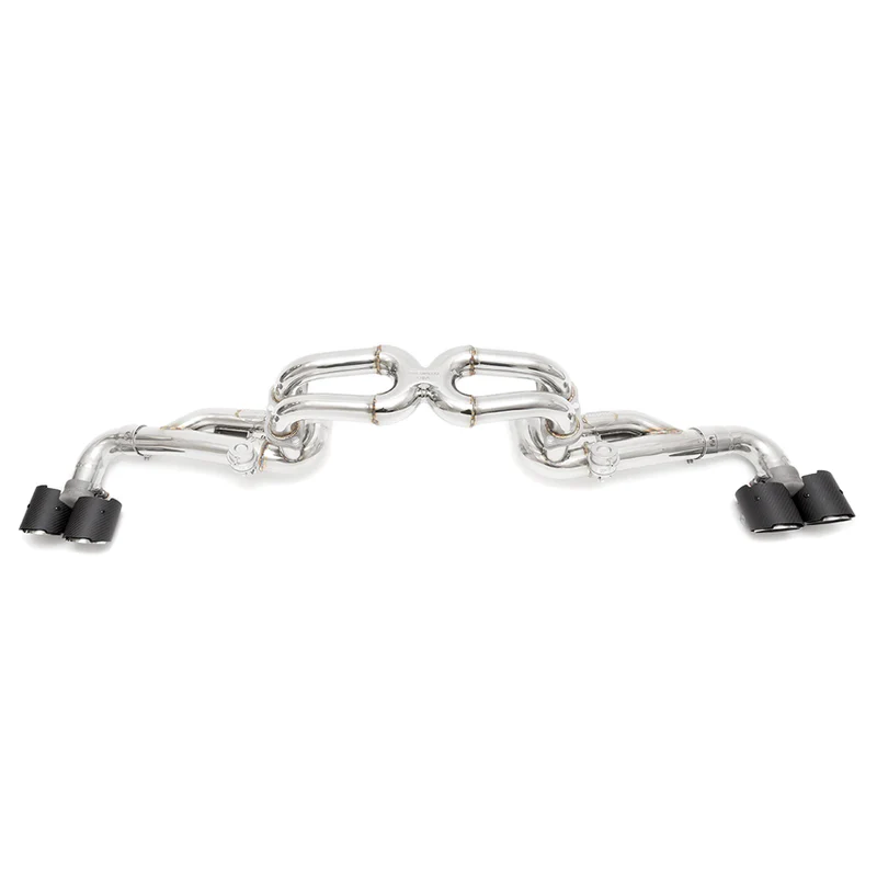 - Optional Fabspeed Deluxe Quad-Style Tips available in your choice of finish (Polished Stainless Steel, Carbon Fiber and Satin Black) For Coupe/Spider vehicles only, or you may choose to re-use OEM tips