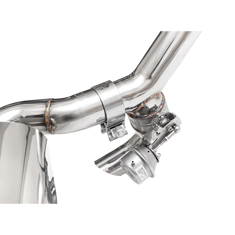 Our esteemed sporty Maxflo Exhaust tone with a raw, race car roar and extra power at the press of a button thanks to muffler bypass valves. One exhaust, two unique tones.