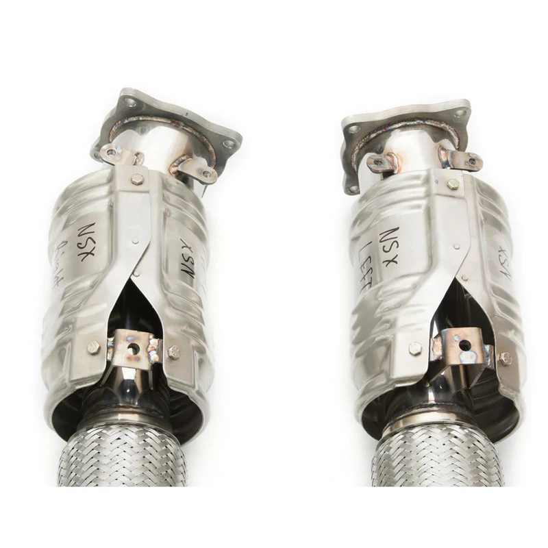 - Direct replacement bolt-on, precision crafted pipes to replace 4 small, extremely restrictive OEM ACURA NSX TT Ceramic Catalytic Converters.