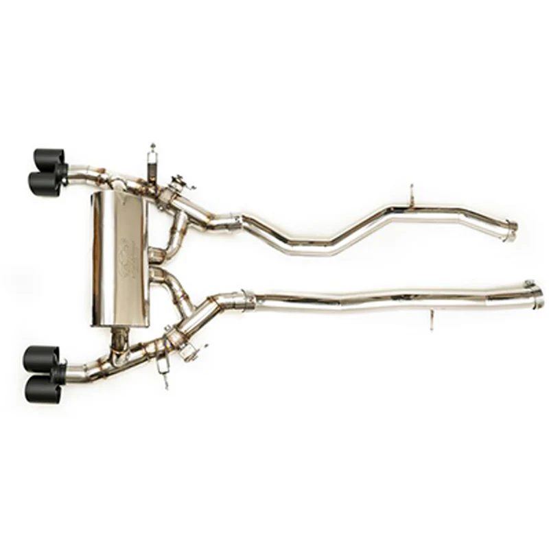 The ultimate catback exhaust system for the Ultimate Driving Machine includes Fabspeed’s high performance Valvetronic rear muffler and exclusive “Double-X” midpipe for the perfect combination of sound and power.