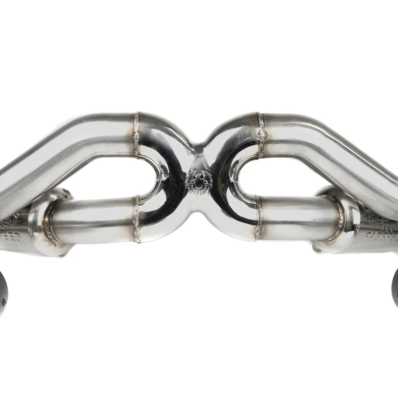 - CAD designed X-Pipe made using investment casting for maximum possible flow and spectacular sports car sound