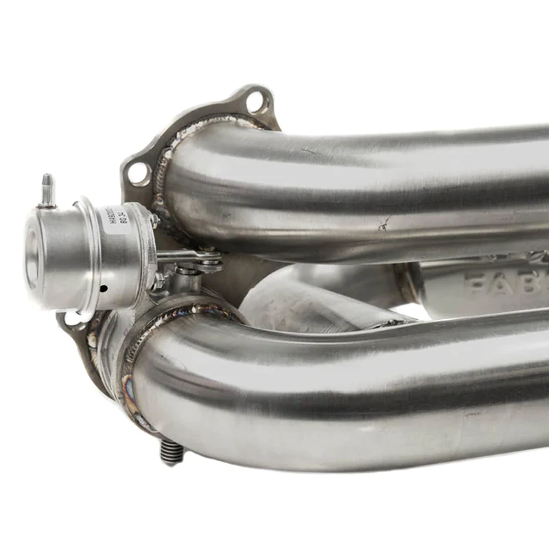 The CAD flow modeled X-pipe is an exclusive Fabspeed part that gives a smooth high pitched exotic sound and flows much better than a X-Pipe handmade from U bends cut and welded together. The exhaust valves we use are made by Helical Limited in the United Kingdom. These ISO 9001 certified valves are the same ones Ferrari, McLaren and Porsche use on their GT cars. The flanges are thick 304 stainless steel that we CAD designed to perfectly match the OEM flanges and reuse the factory metal gaskets.