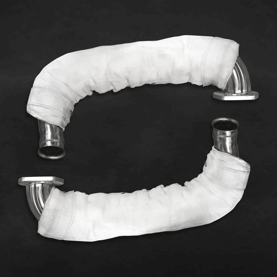 Made of T309 (1.4828) Grade Stainless Steel and Hand-polished to a mirror finish. This version includes custom hand-sewn heat blankets to reduce under-hood temperatures, protecting the surrounding body, hoses, and painted surfaces from residual heat damage.
