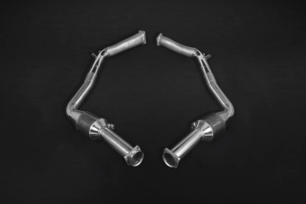 The CAPRISTO valved exhaust system helps low rpm torque by providing back pressure in the exhaust, and raises temperature for good catalytic converter operation. While in the open valve condition for high rpm, it takes full advantage of the free flow characteristics of the CAPRISTO Sport Cats optimizing the high energy exhaust at the ideal temperature and back pressure to maximize performance.