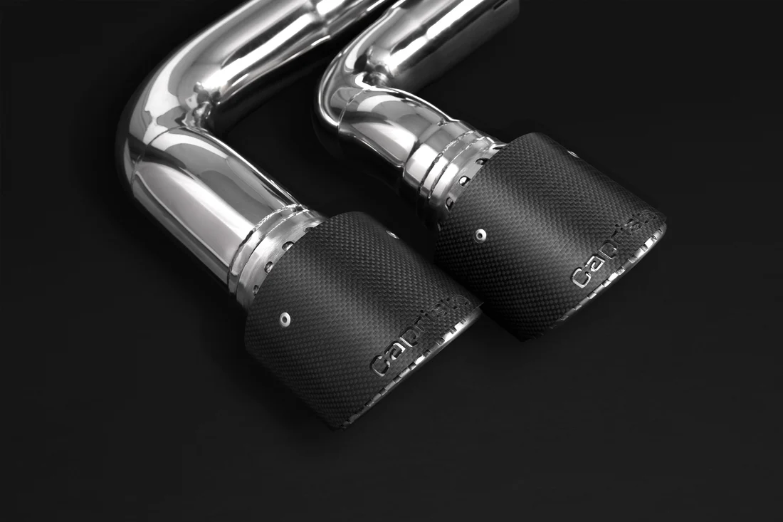 CAPRISTO Porsche 536 Cayenne Turbo/Turbo E-Hybrid/GTS (19+) – Valved Exhaust with Middle Silencer Delete and Carbon Tips (for OE Actuators)